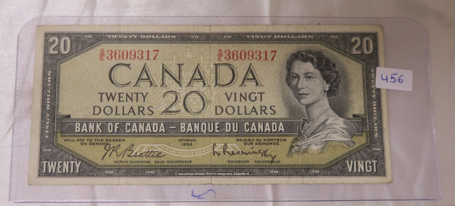 1954 Canada $20 bill, Beattie/Rasminsky, #S/E 3609317