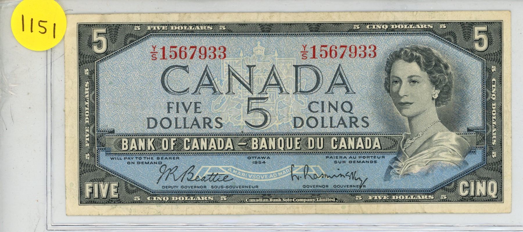 1954 Canada $5 Bill, Beattie/Rasminsky (#Y/S 1567933)