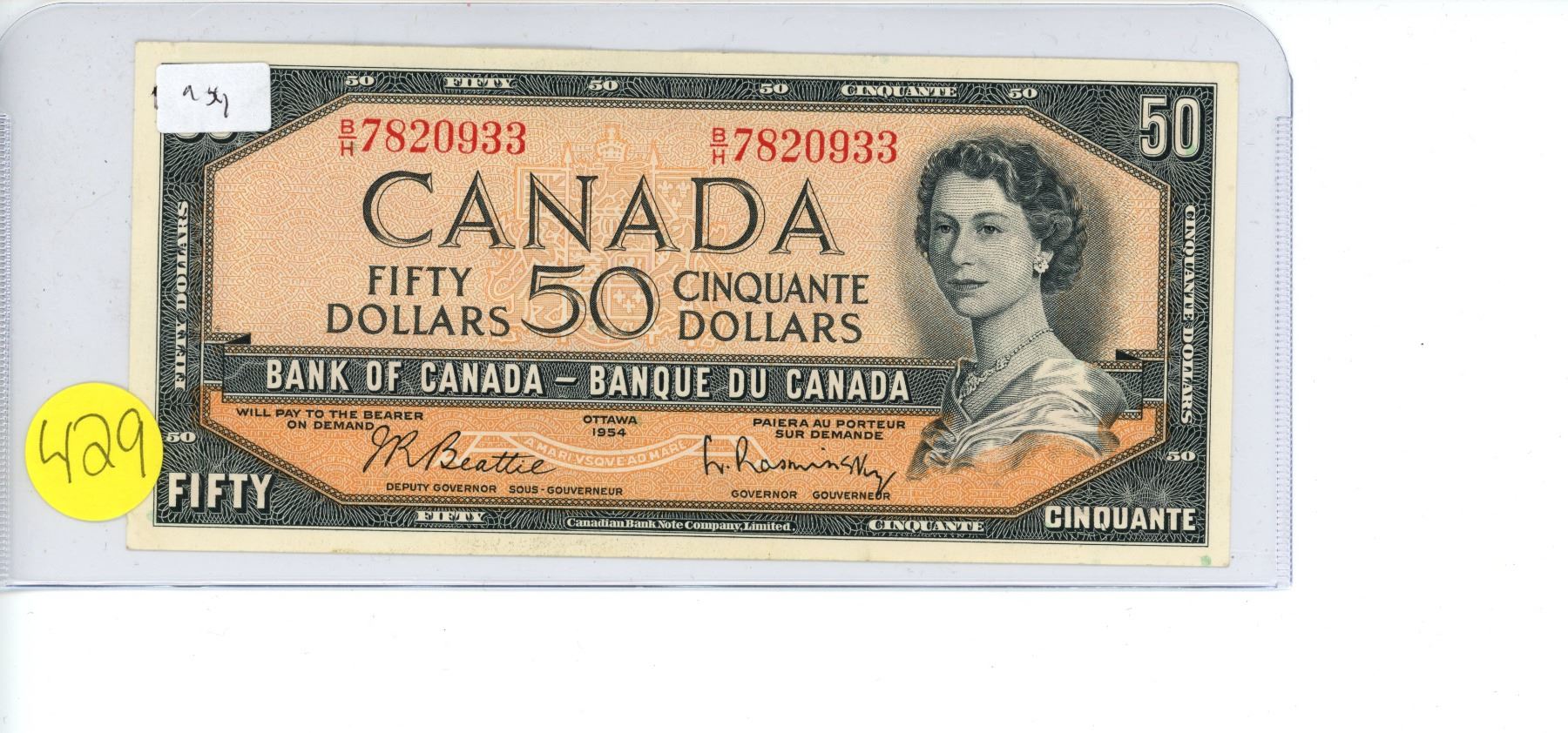 1954 Canada $50.00 Fifty Dollar bill B/H prefix