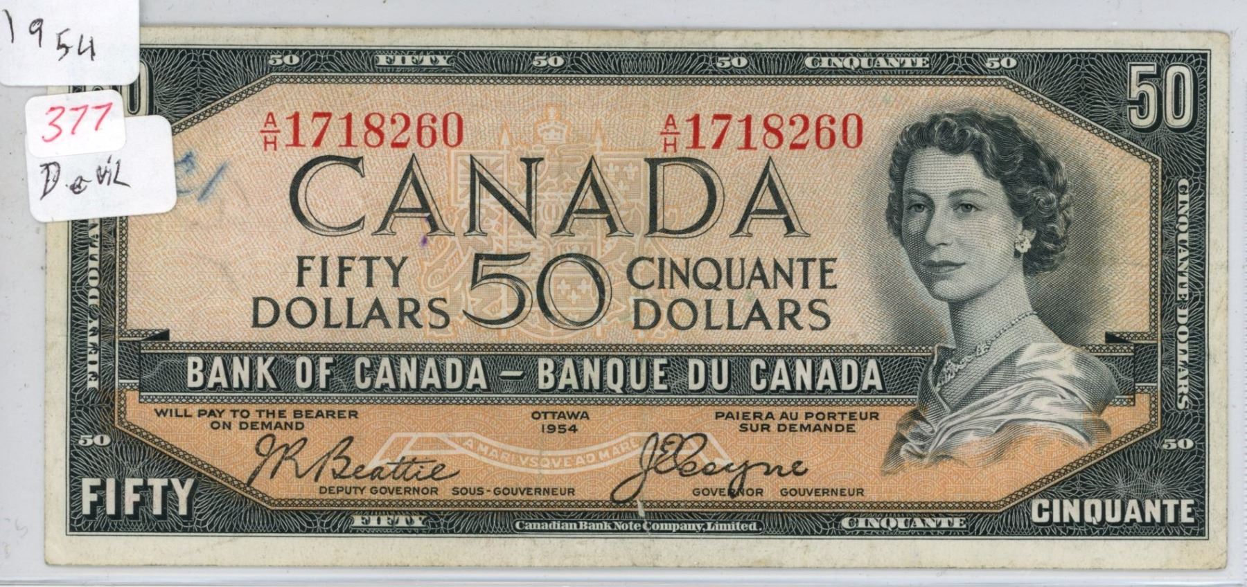 1954 Canada 50 Dollar bill (Devils Face) Beattie / Coyne