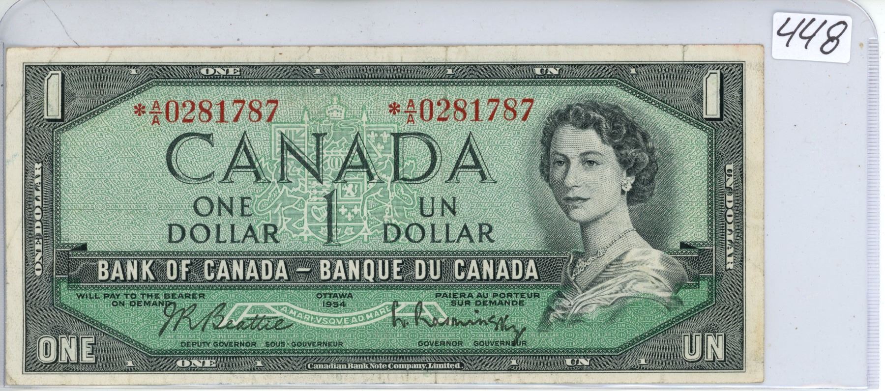 1954 Canada Replacement $1, Beattie/Rasminsky, *A/A 0281787
