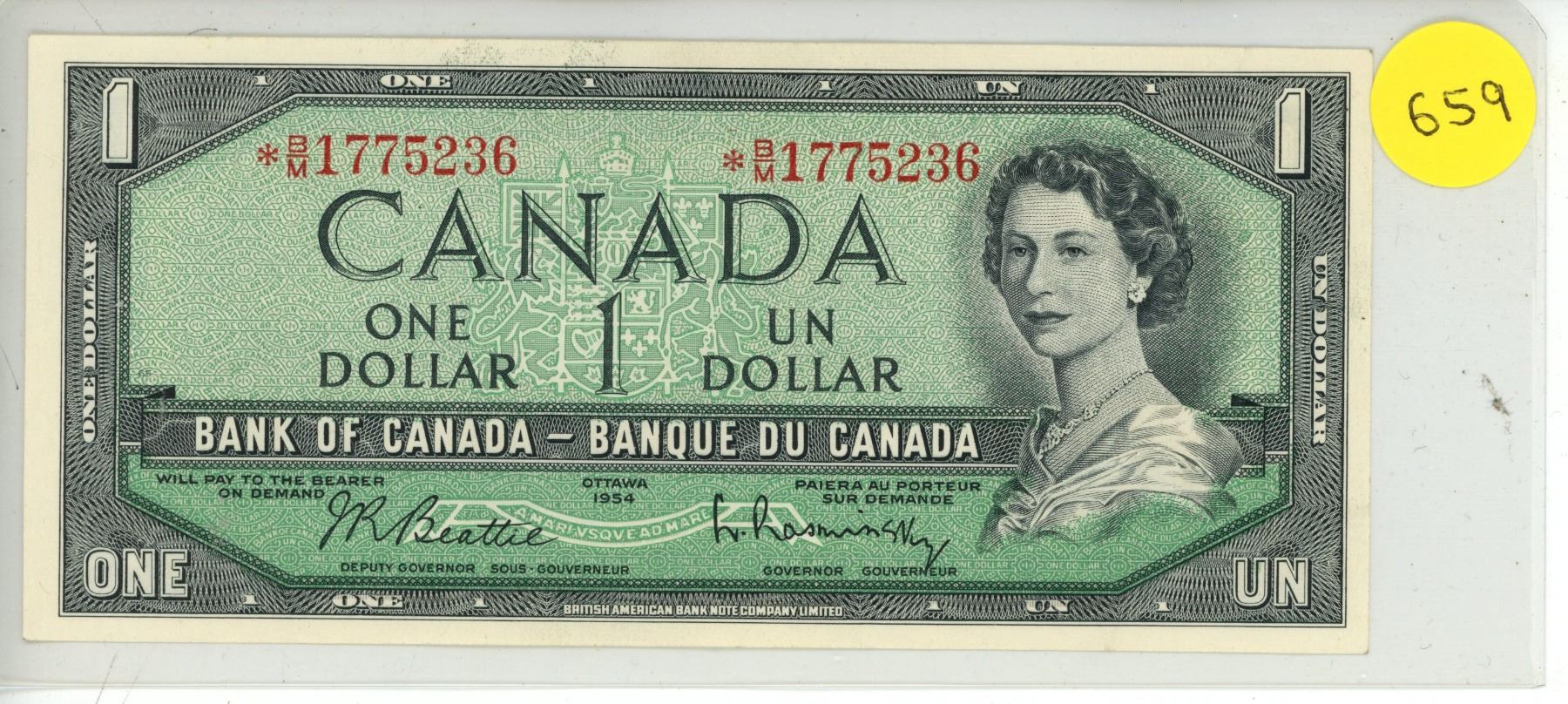 1954 Canada Replacement $1, Beattie/Rasminsky (#*B/M 1775236)