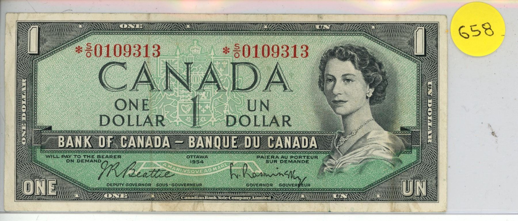 1954 Canada Replacement $1, Beattie/Rasminsky (#*S/O 0109313)