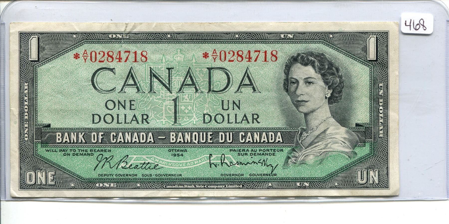 1954 Canada Replacement $1 bill, Beattie/Rasminsky, *A/Y 0284718