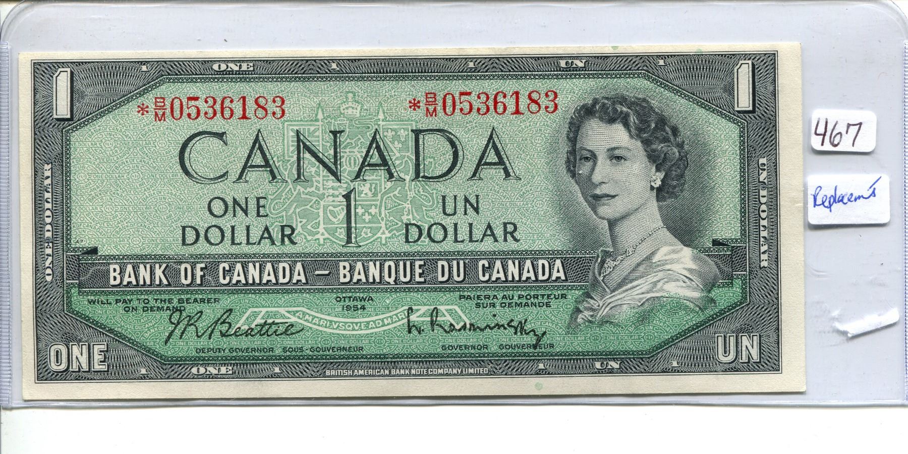 1954 Canada Replacement $1 bill, Beattie/Rasminsky, *B/M 0536183