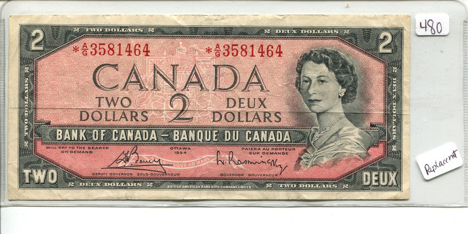 1954 Canada Replacement $2 bill, Bouey/Rasminsky, *A/G 3581464