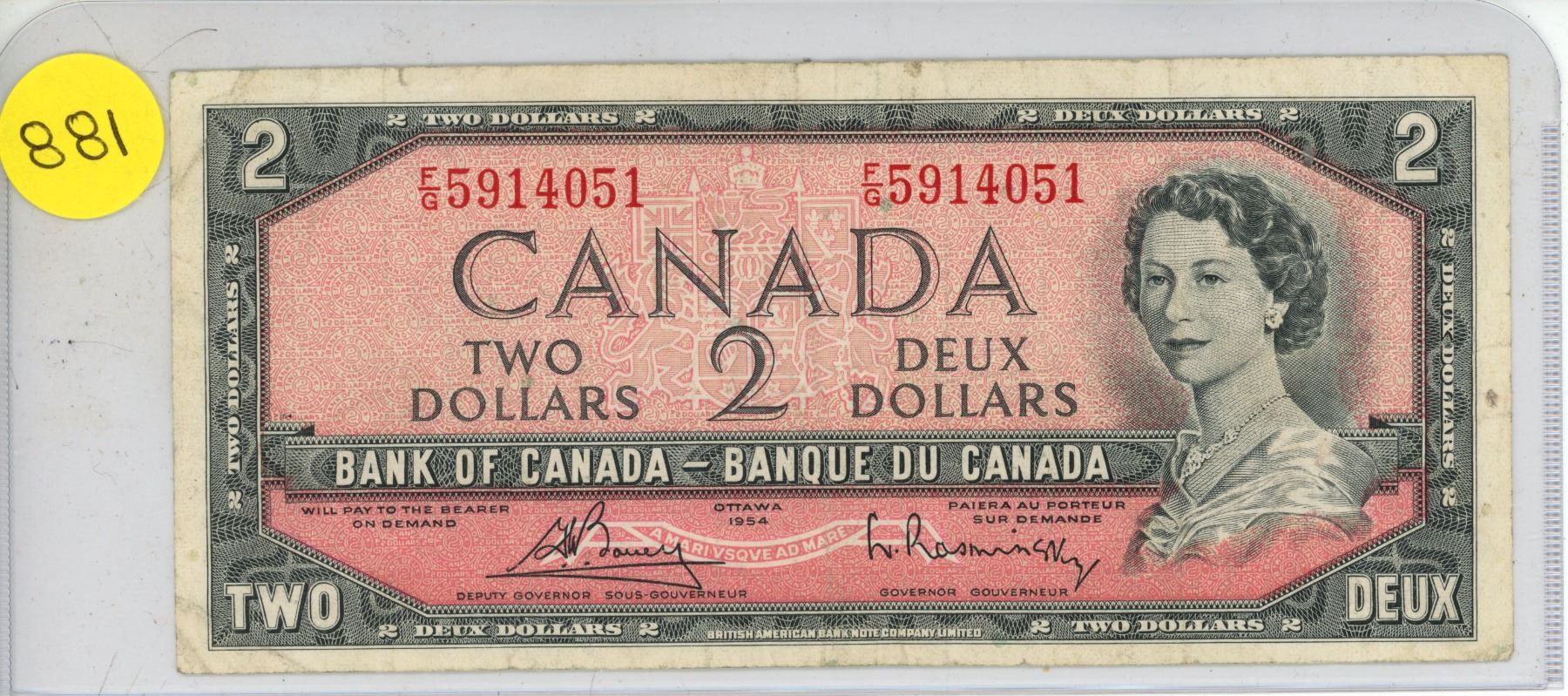 1954 Canadia n$2 bill- F/G5914051