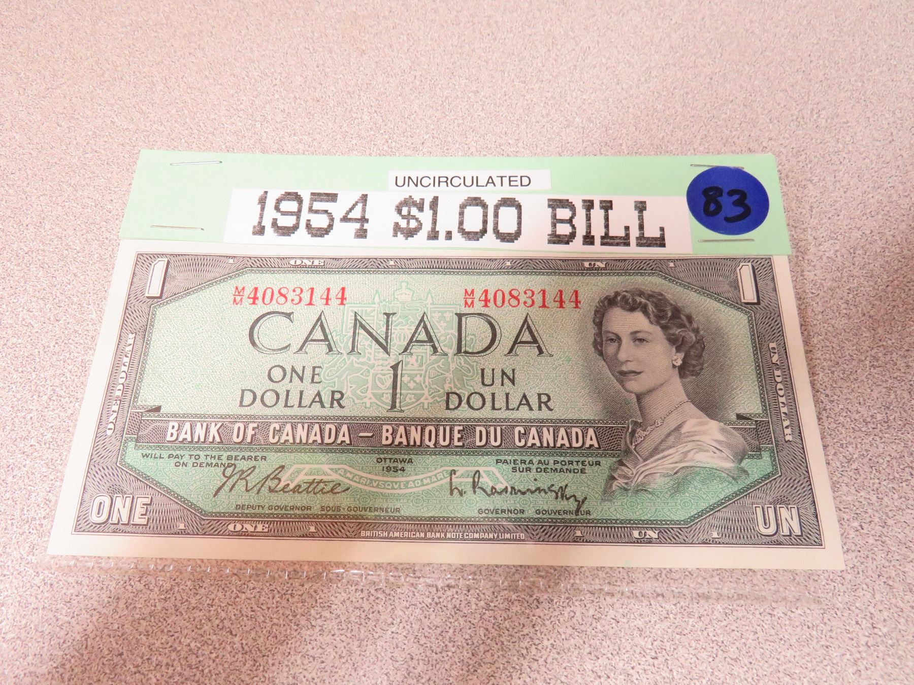 1954 Canadian $1.00 Banknote-uncirculated