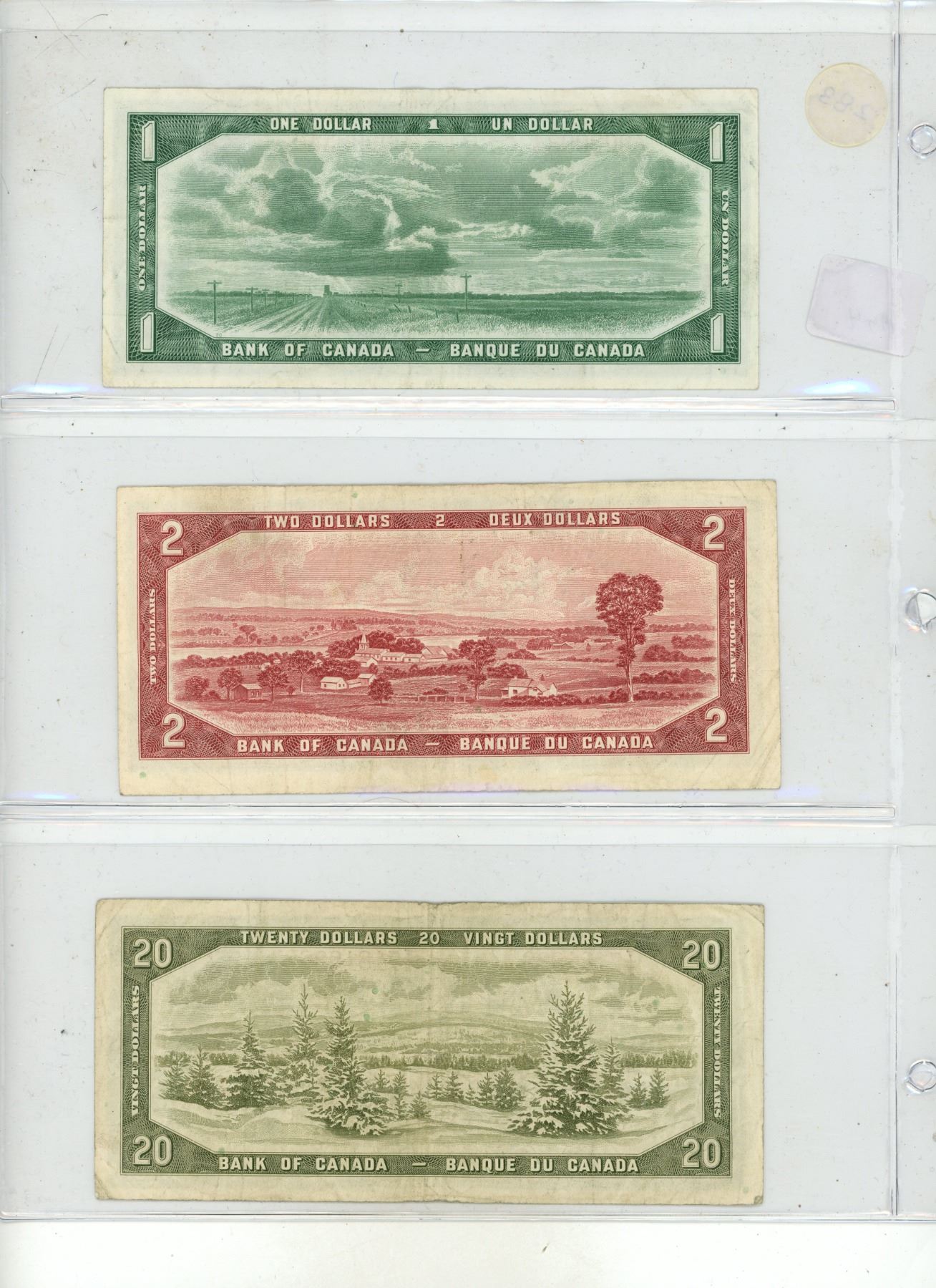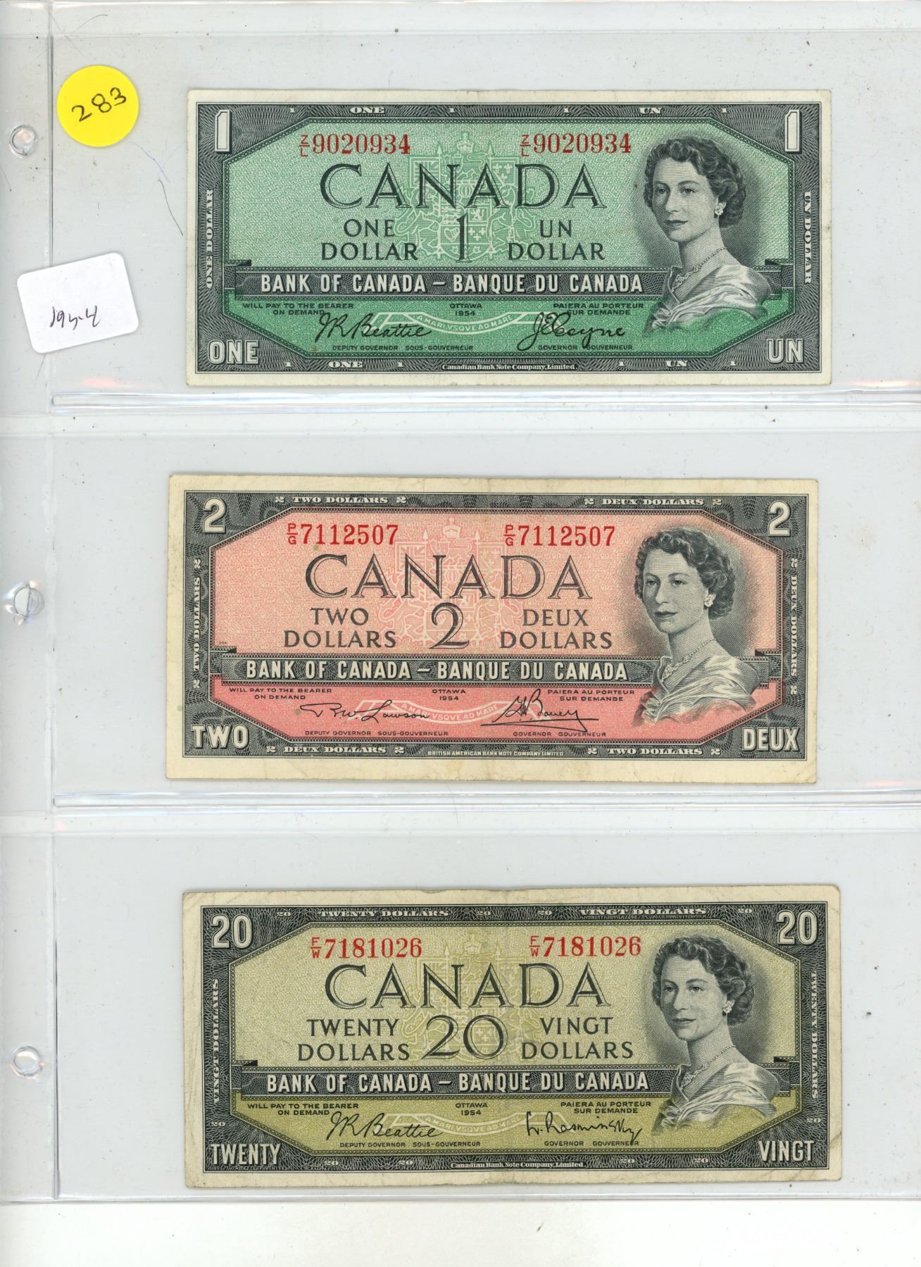 1954 Canadian 1, 2, 20 Dollar.