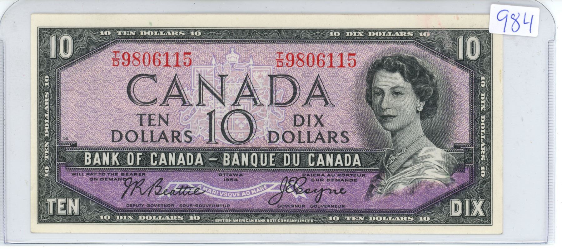 1954 Canadian $10 bill - Beattie/Coyne - T/D prefix - 9806115