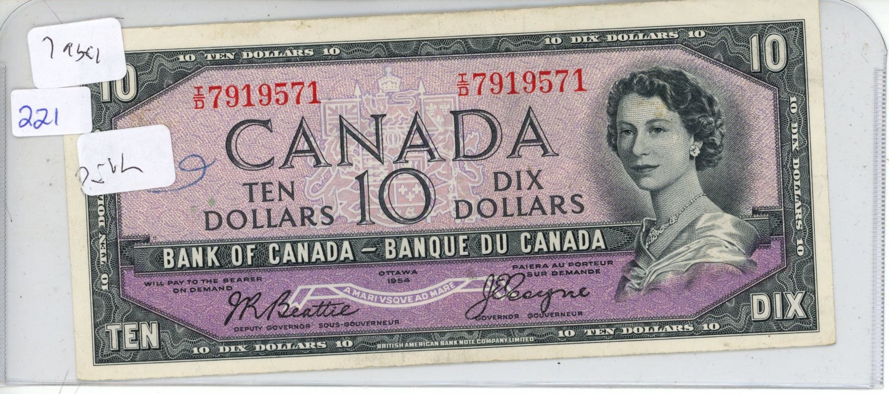 1954 Canadian 10 dollar, Beattie/Coyne, T/O 7919571; Devil's Face