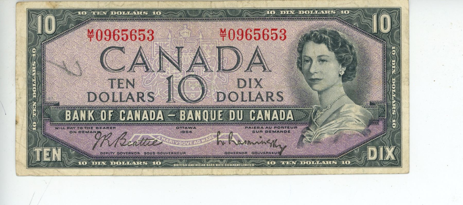 1954 Canadian 10 dollar bill - Beattie/Rasminsky - M/T 2965653