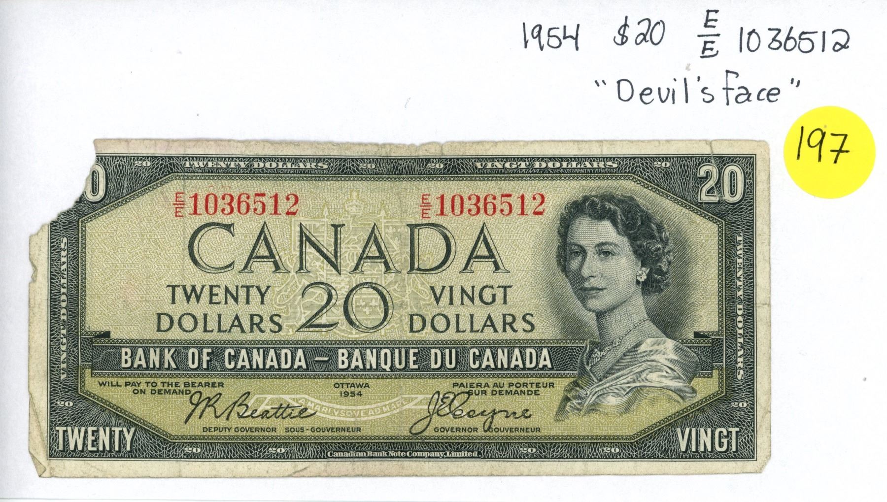 1954 Canadian $20.00 Twenty Dollar 'Devil's Face' E/E 1036512