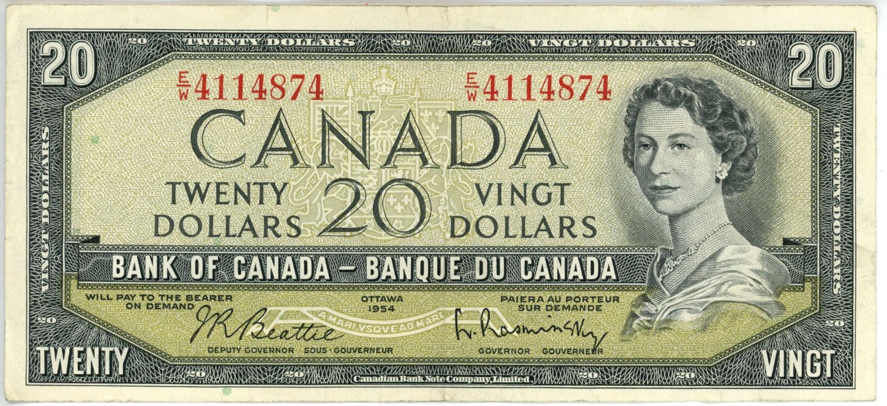1954 Canadian $20.00 Twenty Dollar bill