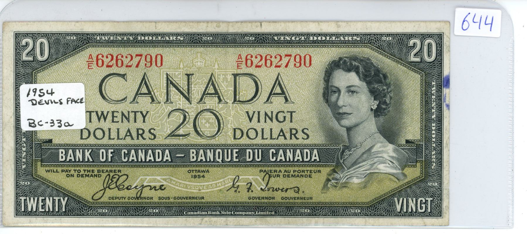 1954 Canadian 20 dollar "Devils face" bill - Coyne/Towers - Prefix A/E 6262790
