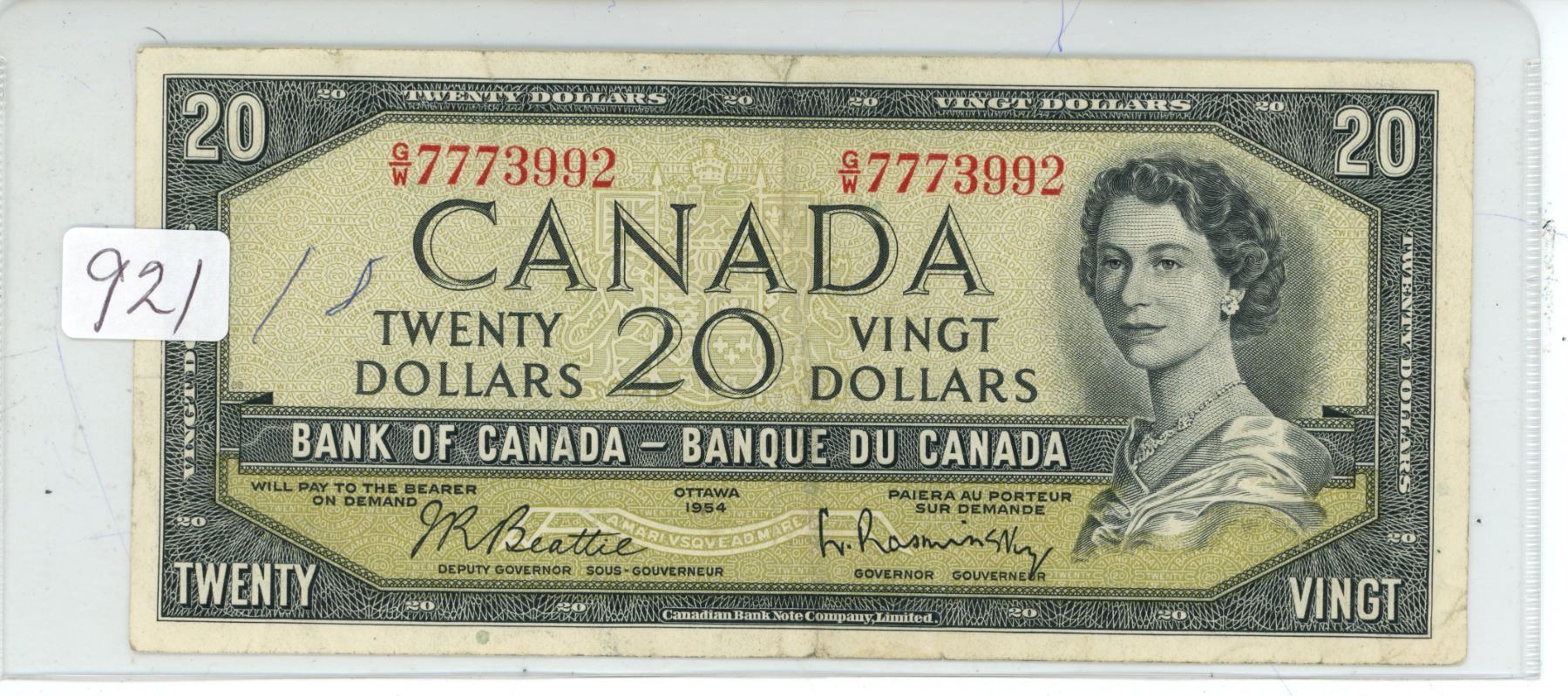 1954 Canadian 20 dollar bill - Beattie/Rasminsky - G/W 7773992