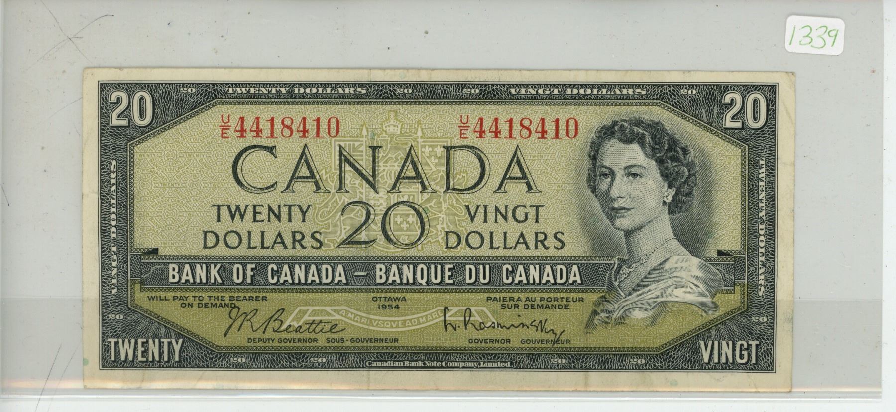 1954 Canadian 20 dollar bill - Beattie/Rasminsky - U/E 4418410
