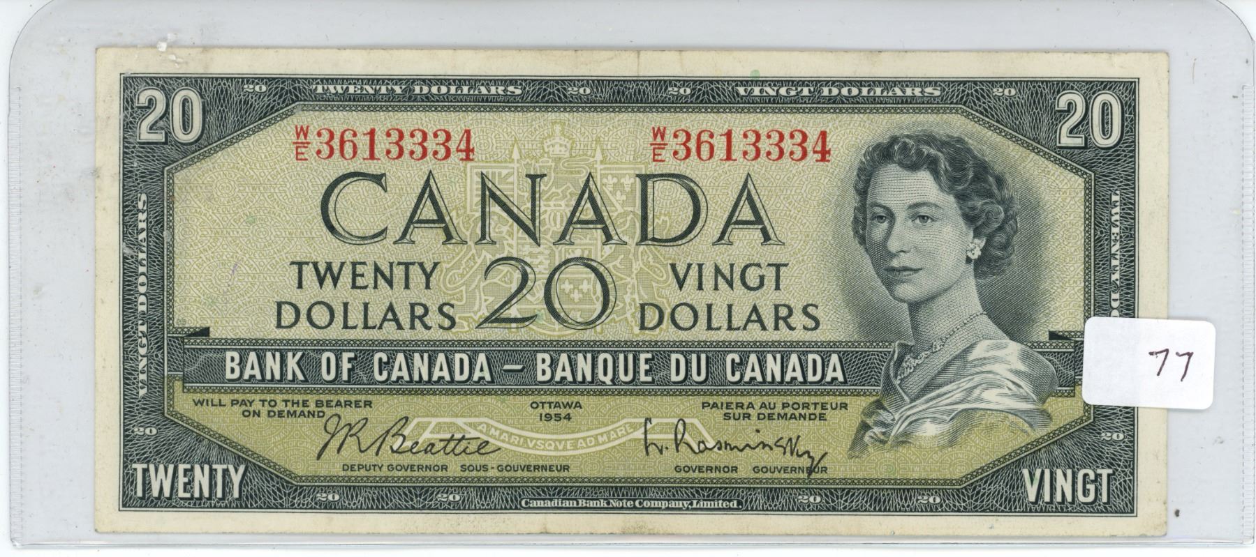 1954 Canadian 20 dollar bill