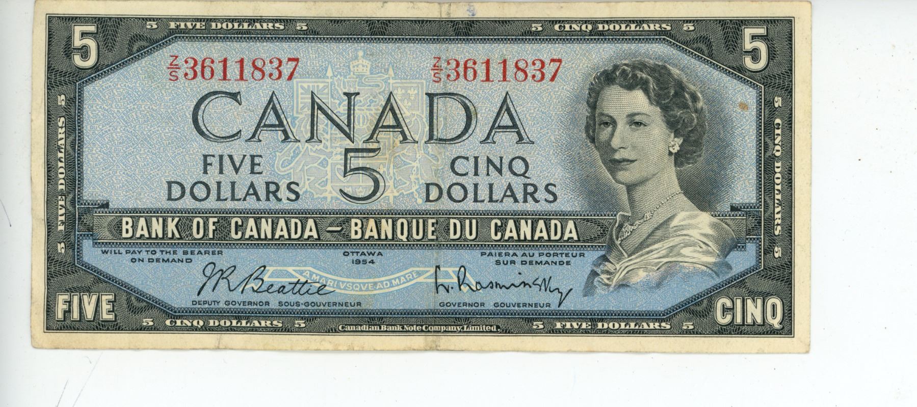 1954 Canadian 5 dollar bill - Beattie/Rasminsky - Z/S 3611837