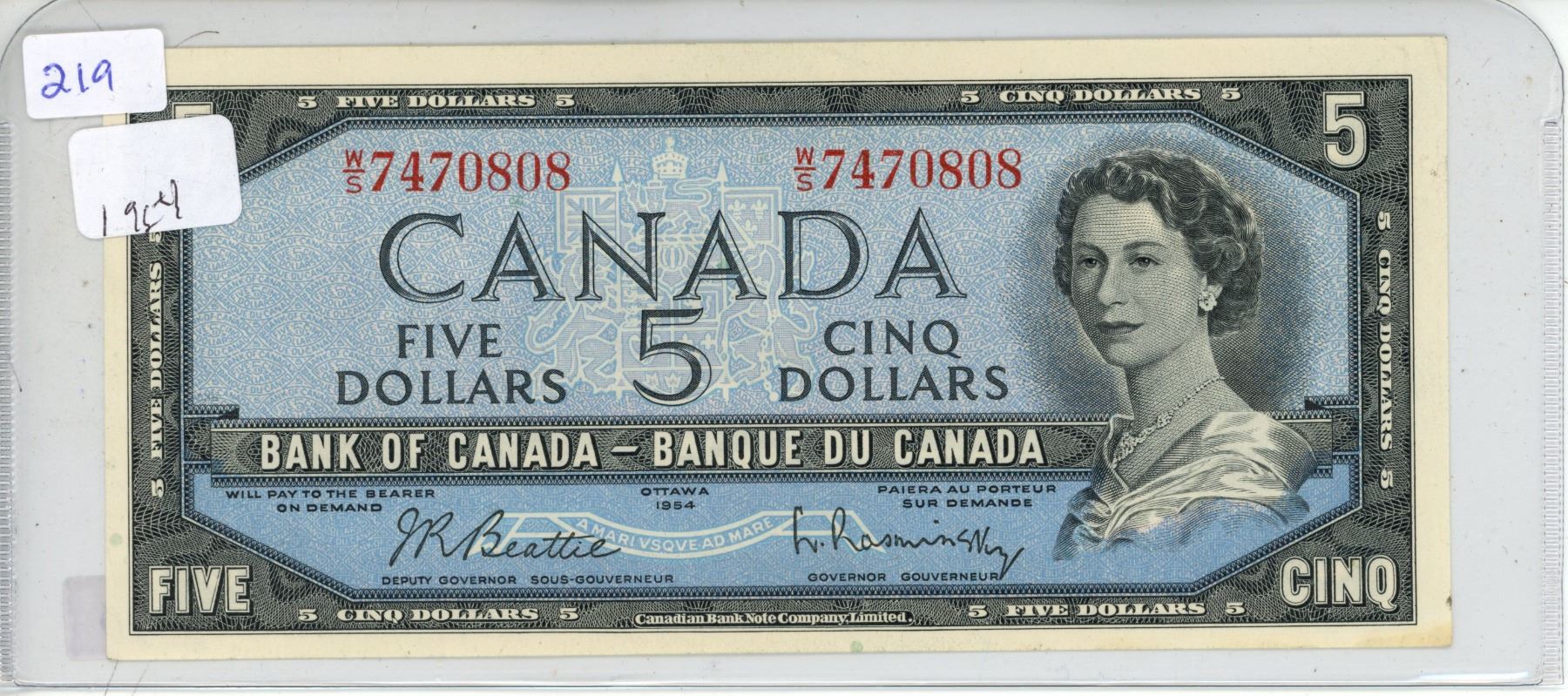1954 Canadian 5 dollars, Beattie/Rasminsky, W/S 7470808