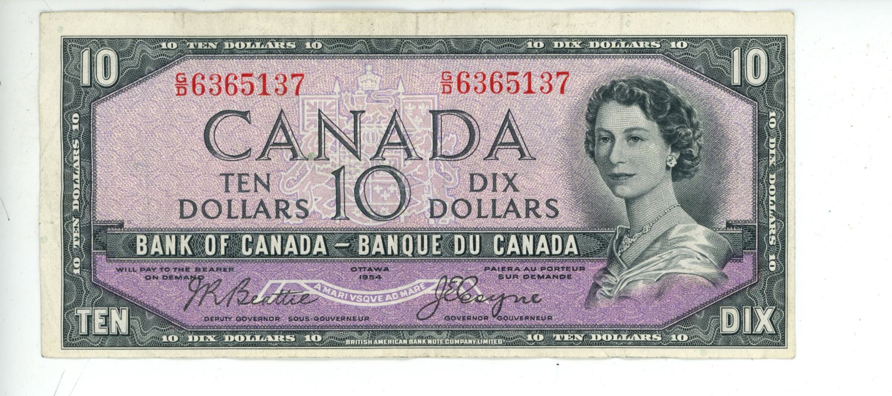 1954 Canadian "Devil's face" 10 dollar bill - Beattie/Coyne - G/D 6365137