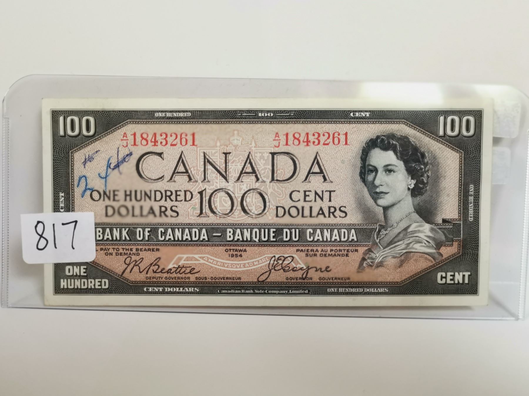 1954 Canadian "Devil's face" 100 dollar bill - Beattie/Coyne