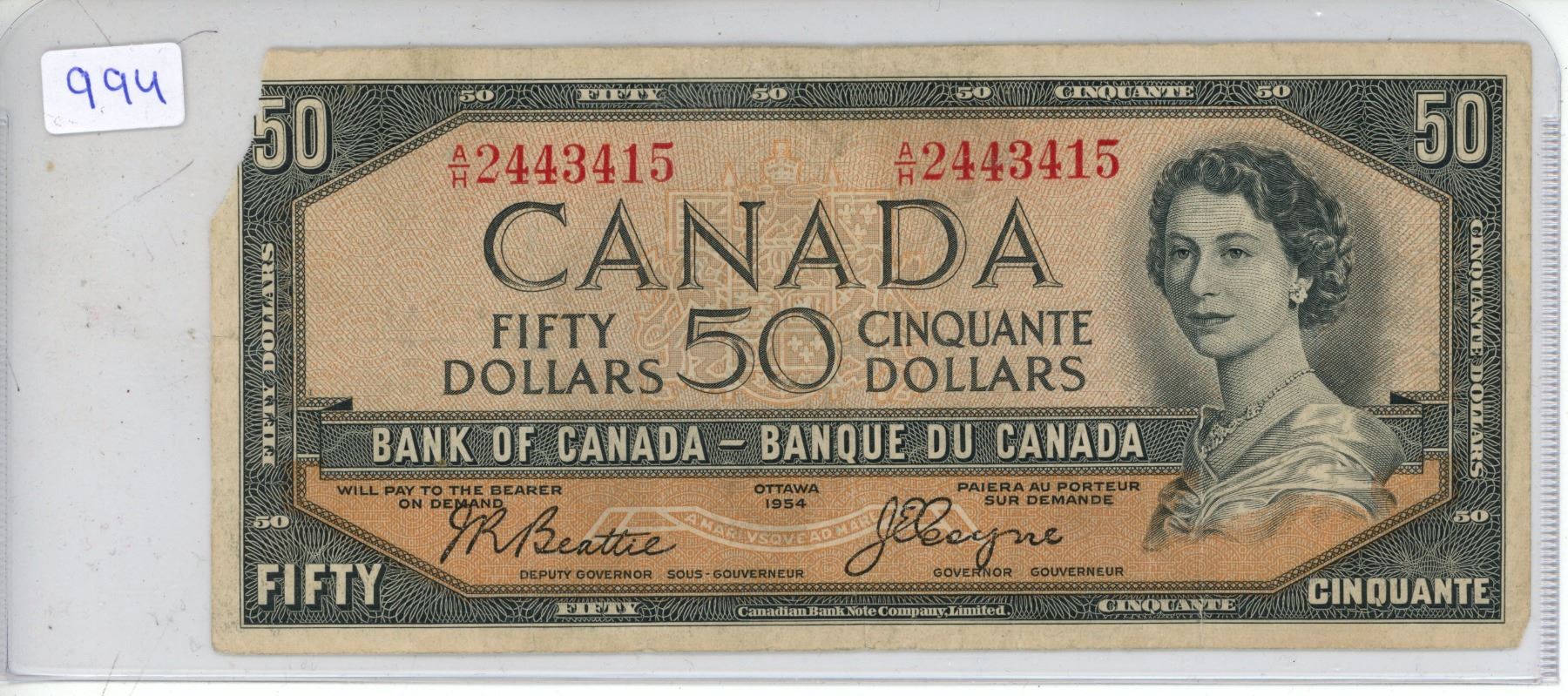 1954 Canadian Fifty Dollar.