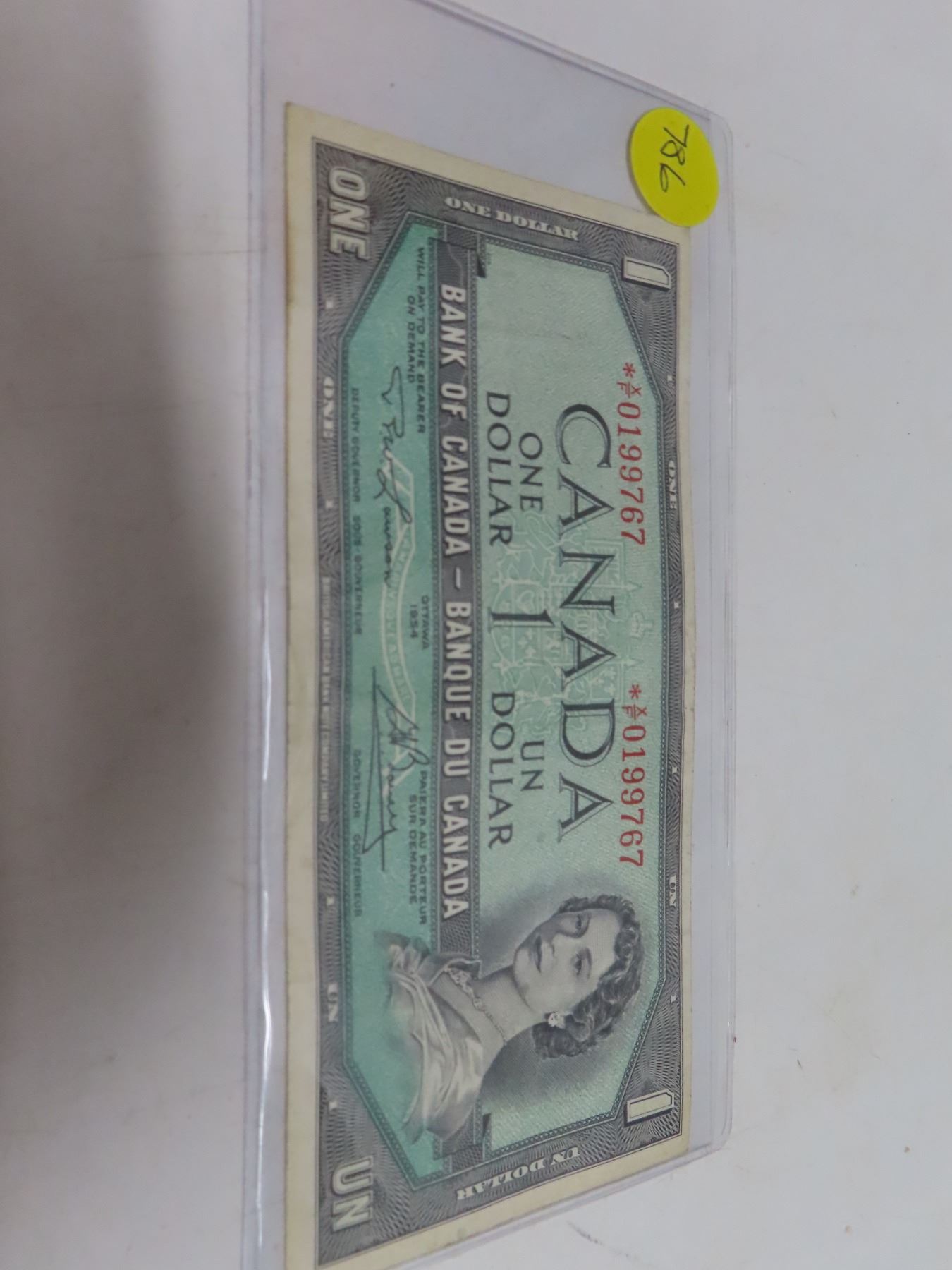 1954 Canadian replacement 1 dollar bill - Lawson/Bouey - X/F 0199767