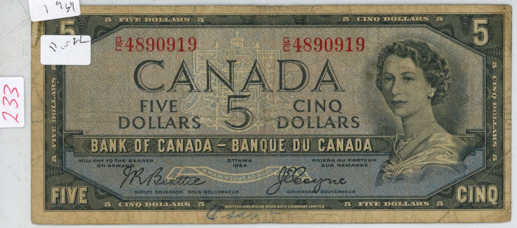 1954 Devil's Face Canada $5.00 five dollar bill