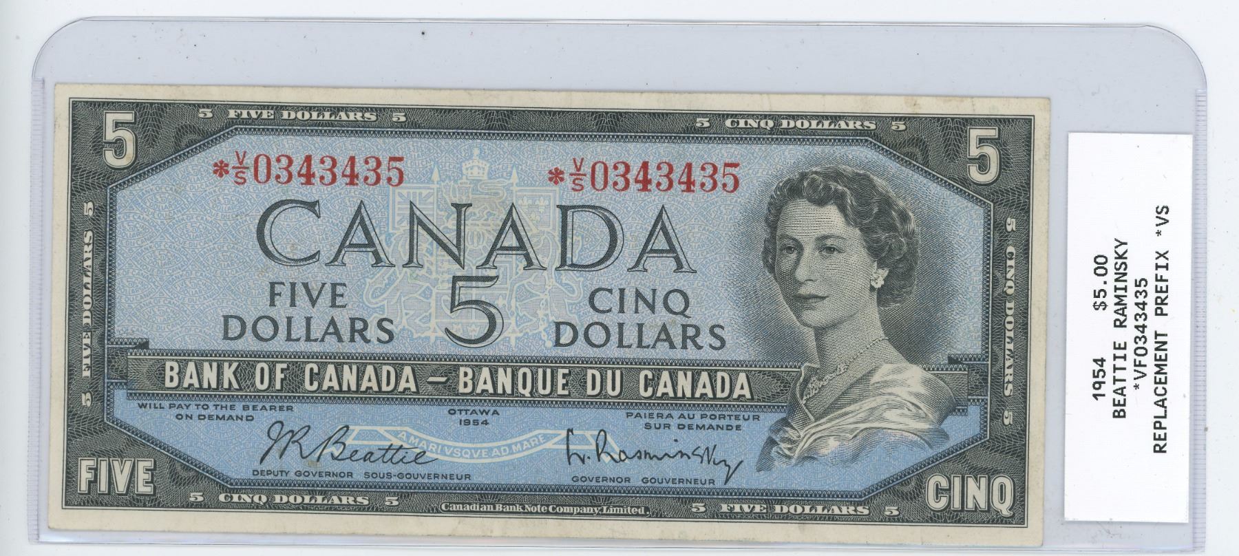1954 FIVE DOLLAR BILL (REPLACEMENT PREFIX) *ALMOST UNC*