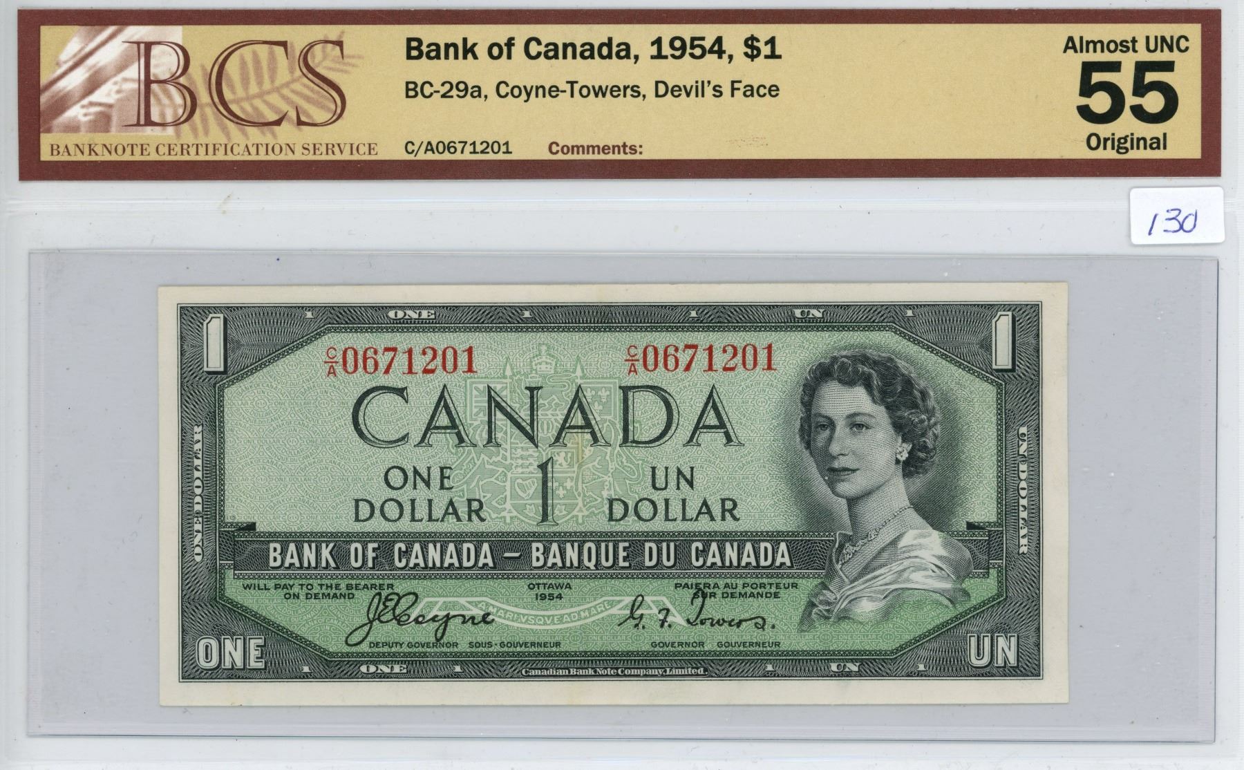 1954 Graded AU-55 'Devil's Face' one dollar bill