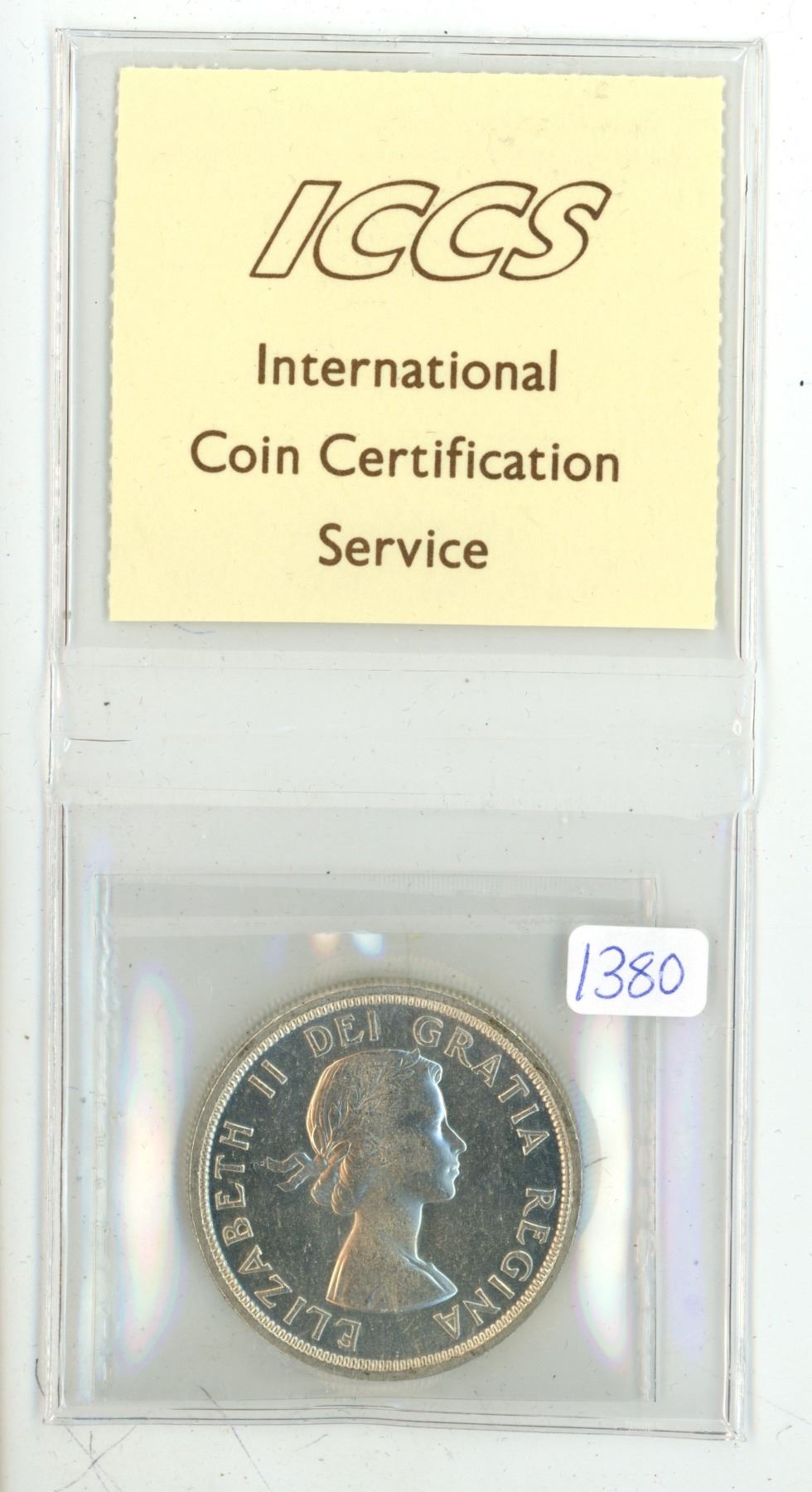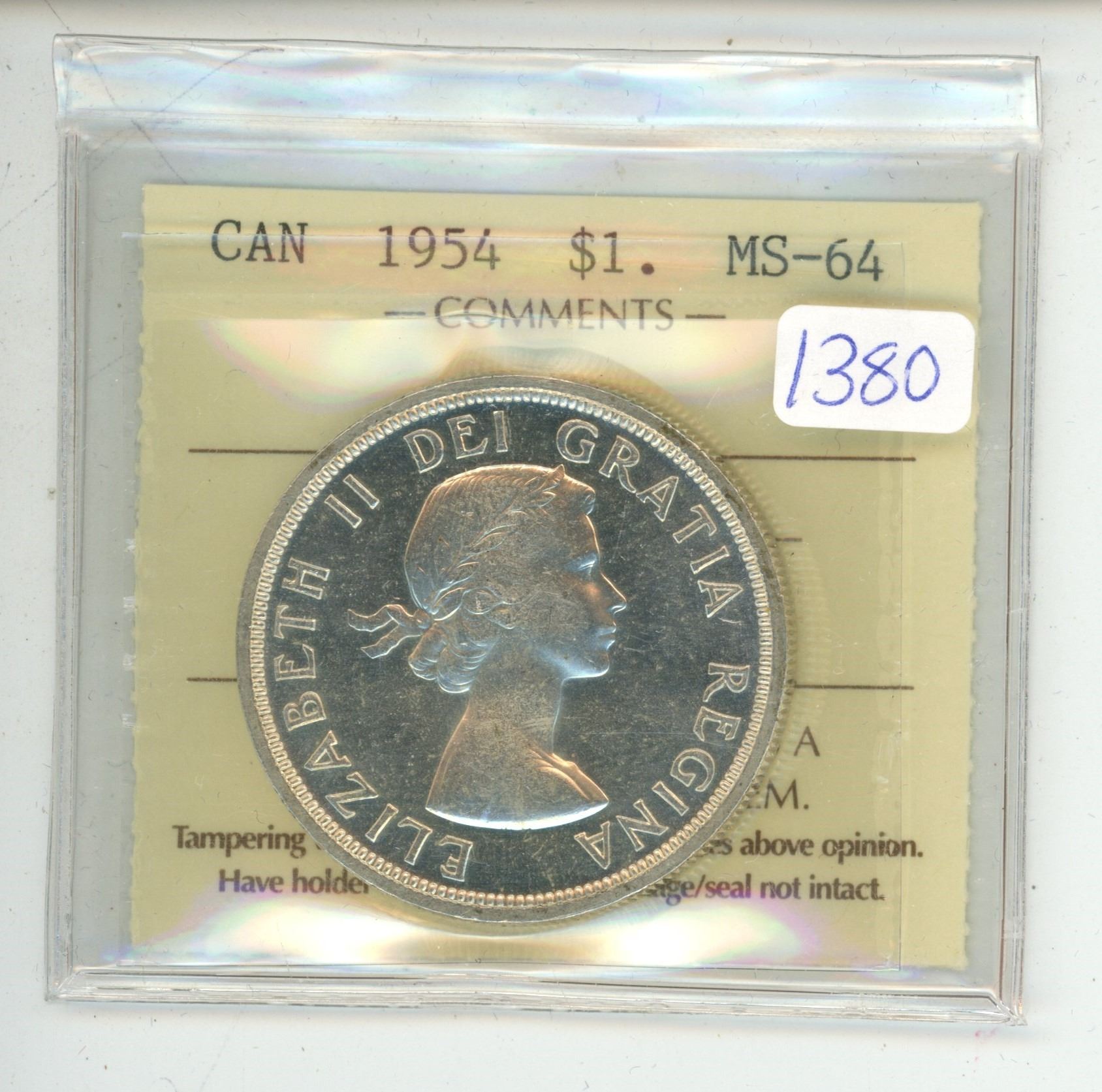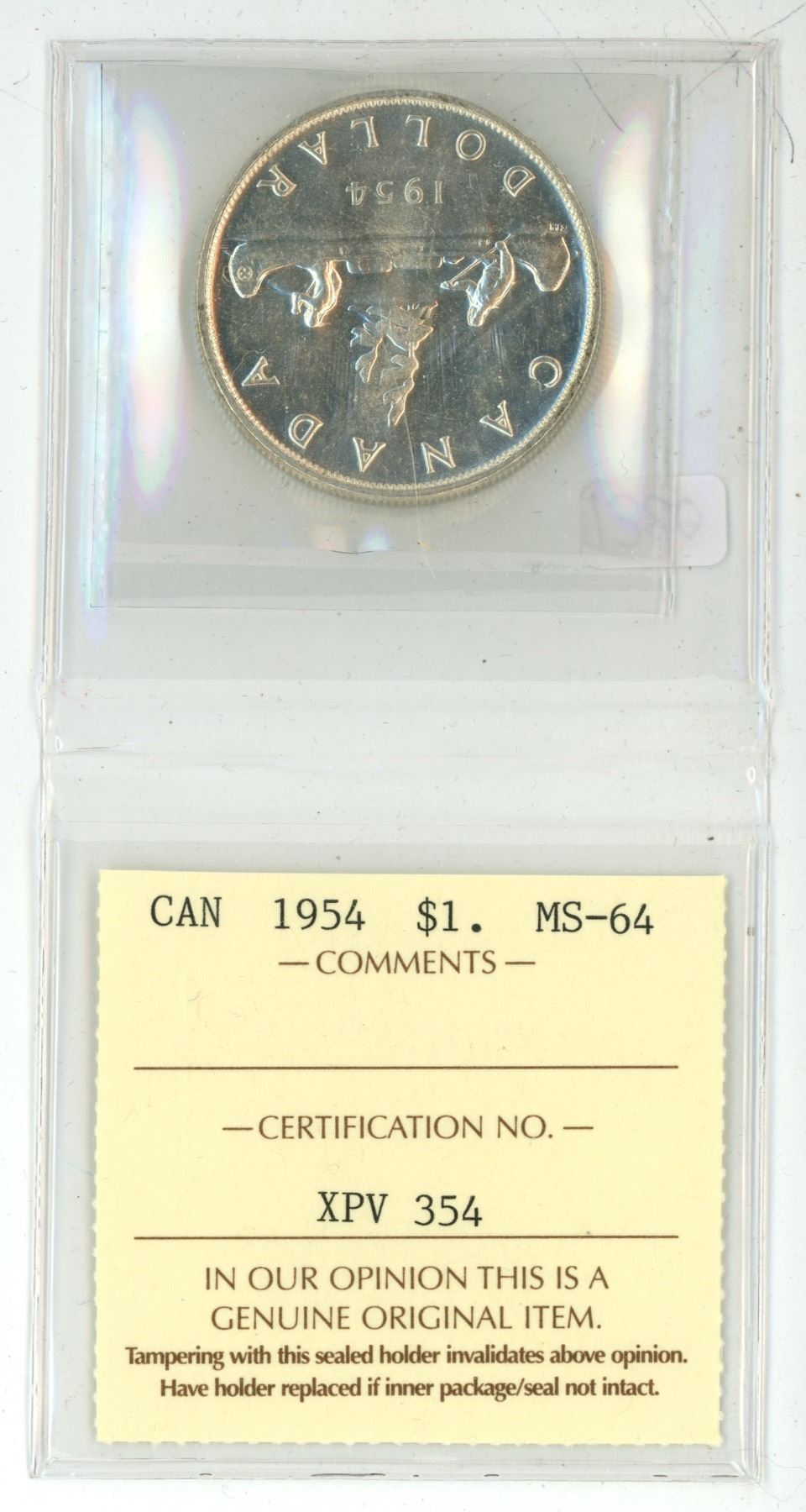 1954 ICCS graded, Canadian silver voyageur dollar - MS64