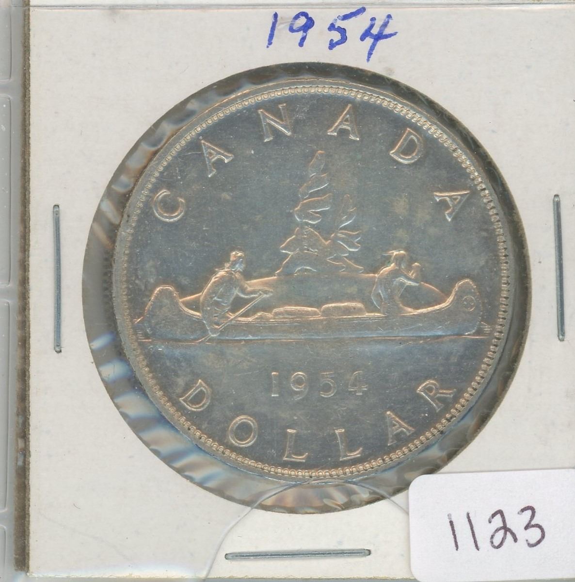 1954 SHORT WATER LINES CANADA SILVER DOLLAR
