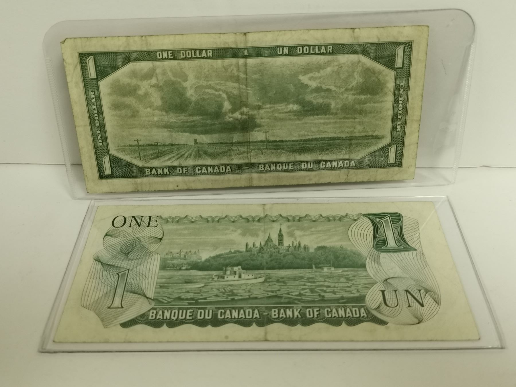 1954 and 1973 Canadian 1 dollar bills - one replacement