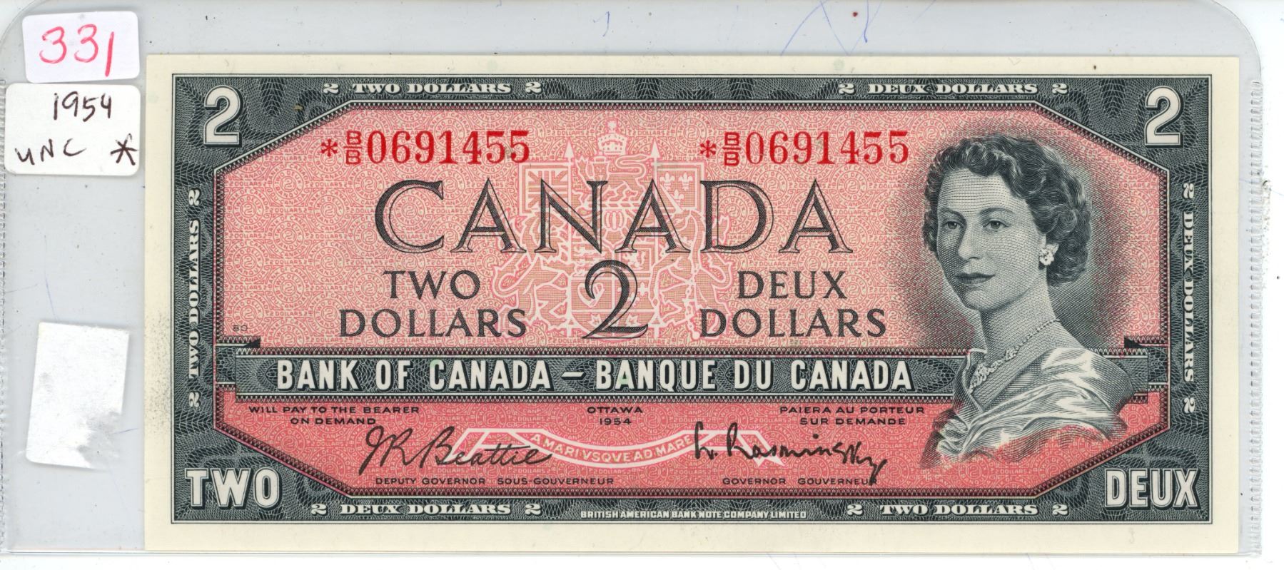 1954 canada 2 dollar bill- VF