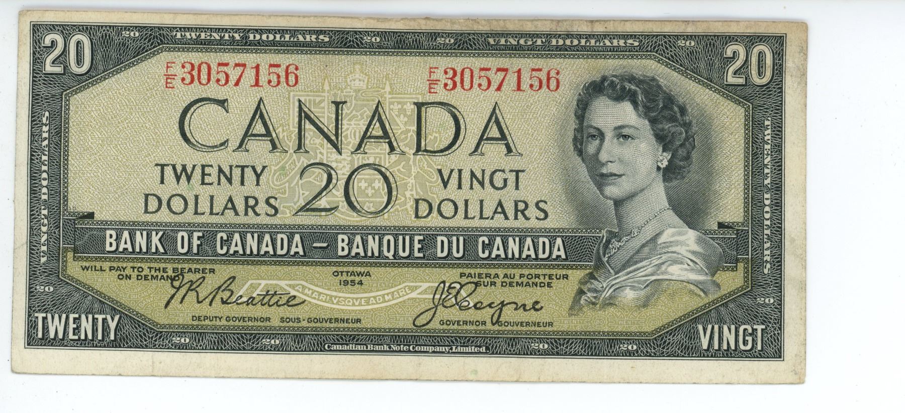 1954 canadian 20 dollar bill- F/E 3057156