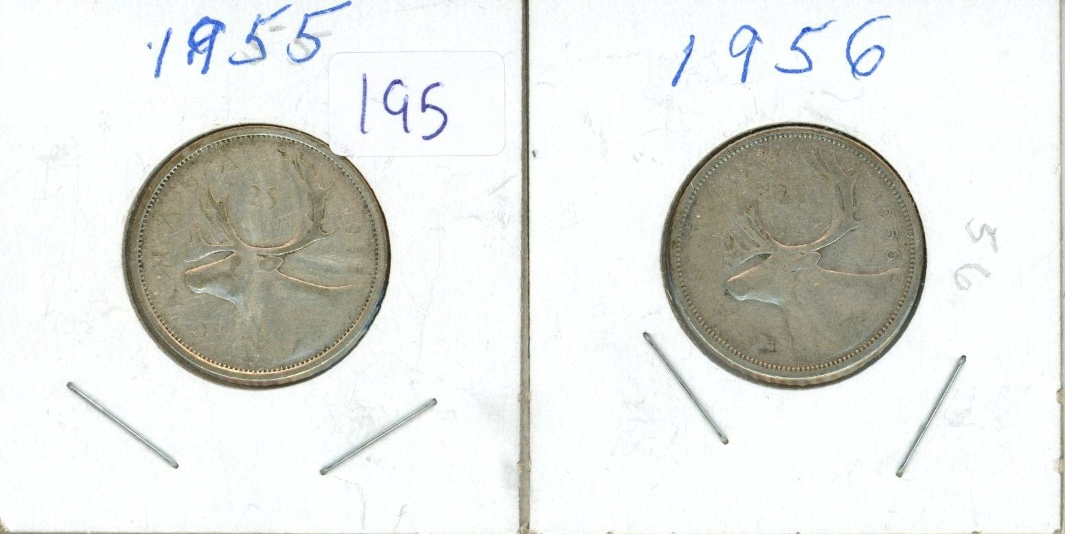 1955 & 1956 Canadian Silver 25 Cent Coins