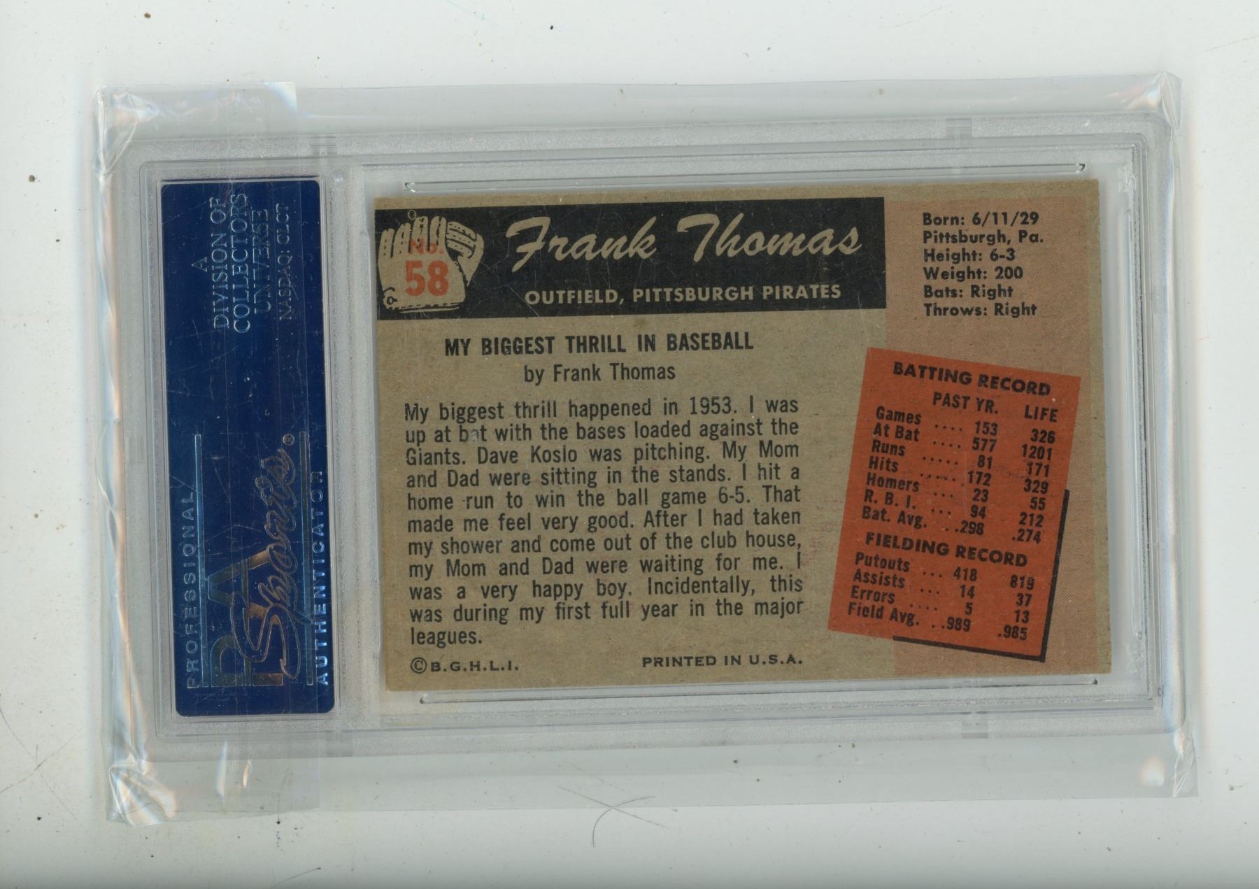 1955 Bowman Frank Thomas - #58 EX - MT - 6 - 19979245 - PSA .