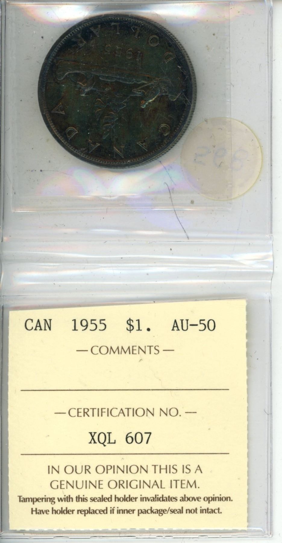 1955 Canada One Dollar - AU-50 - Silver - XQL 607 - ICCS.