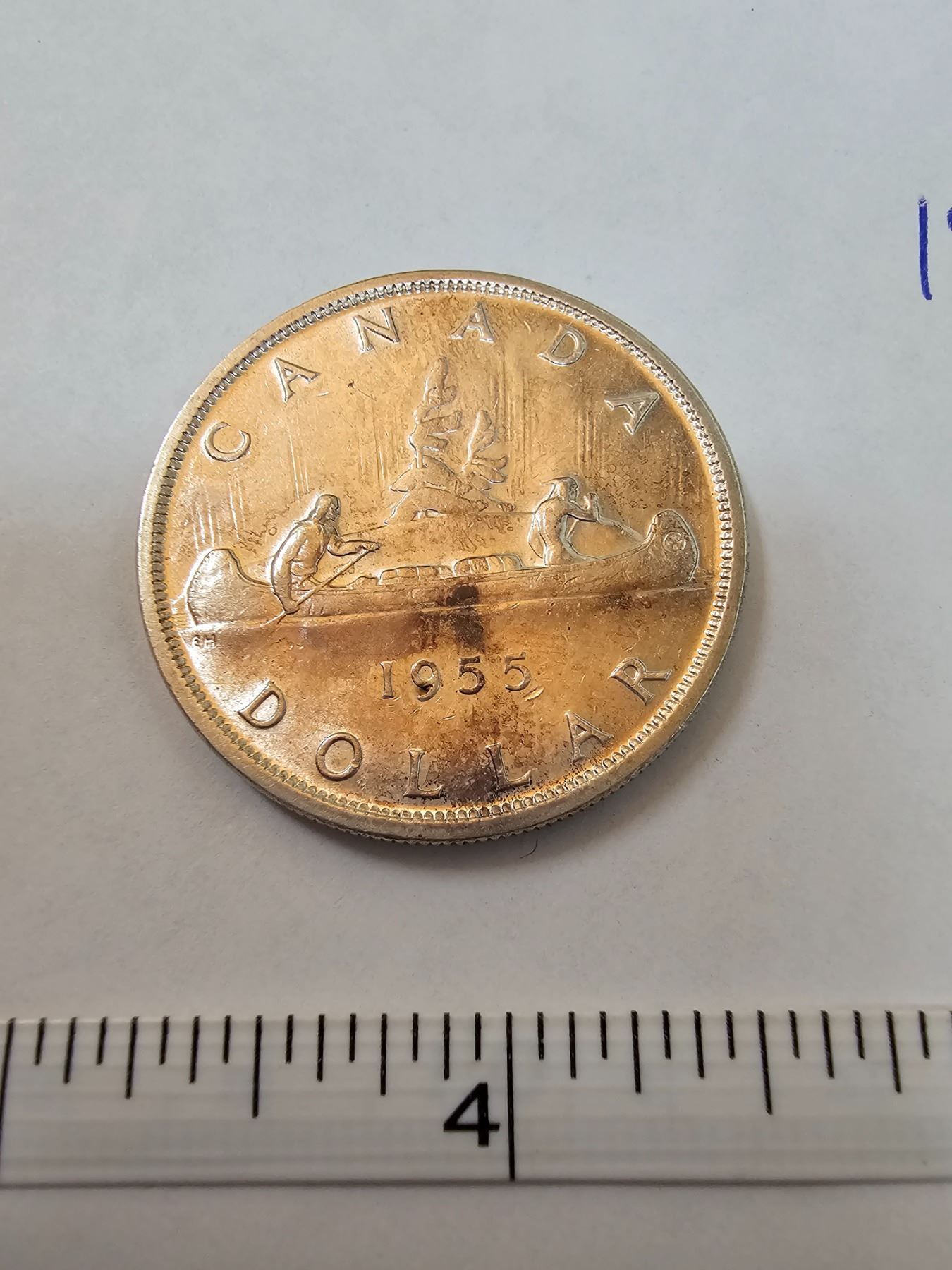 1955 Canada silver dollar $1.00 "IA BREAK"