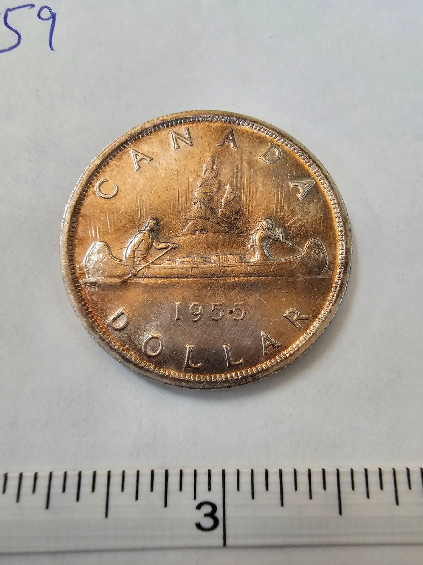 1955 Canada silver dollar $1.00 "TI Break"