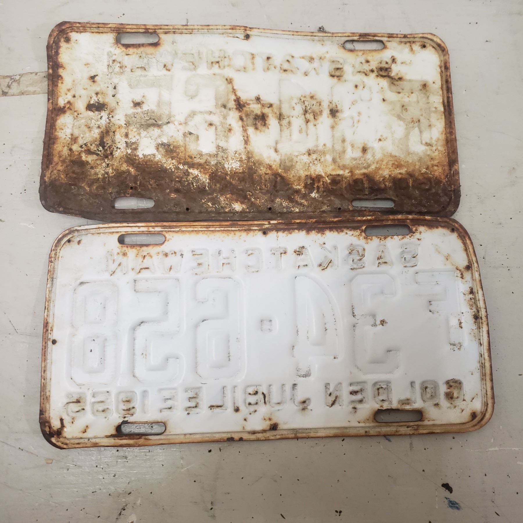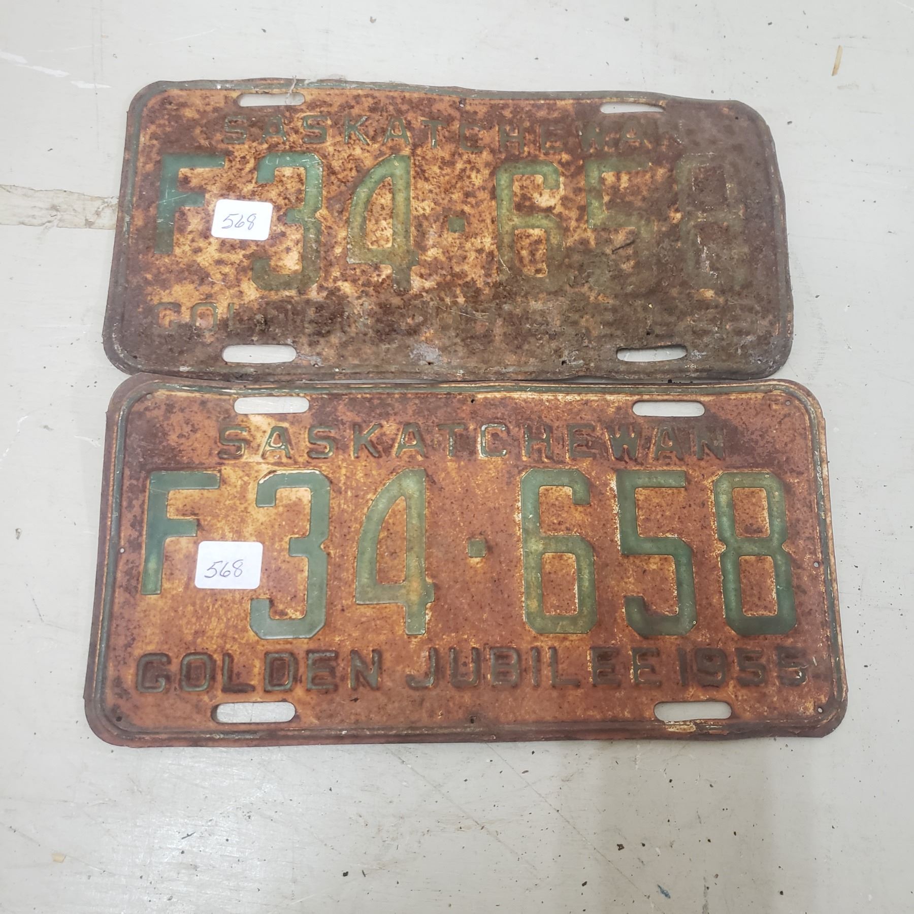 1955 Saskatchewan pair Golden Jubilee Liscence Plate vintage original Sask plate
