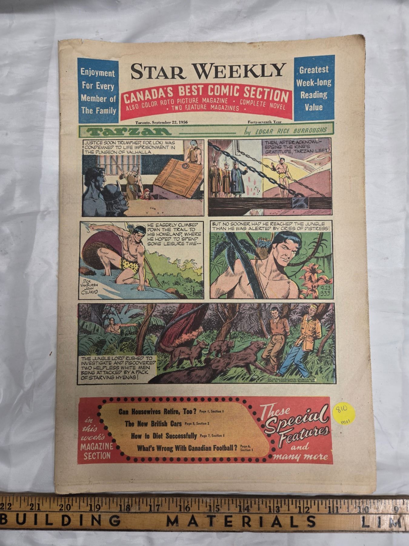 1956 STAR WEEKLY COMIC SECTION. TARZAN, LONE RANGER TEAM.