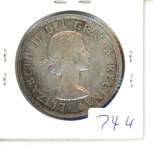 1957 1 Water Line Canadian Silver Dollar. AU-50. Scarce.