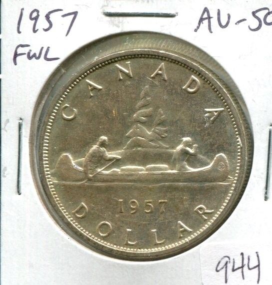 1957 Silver Dollar. Full Water Lines. AU-50. Nice.