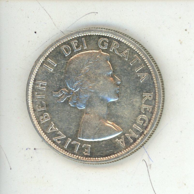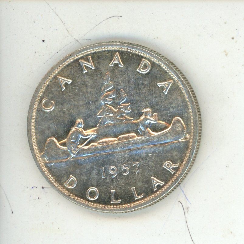 1957-one water line Canadian silver dollar
