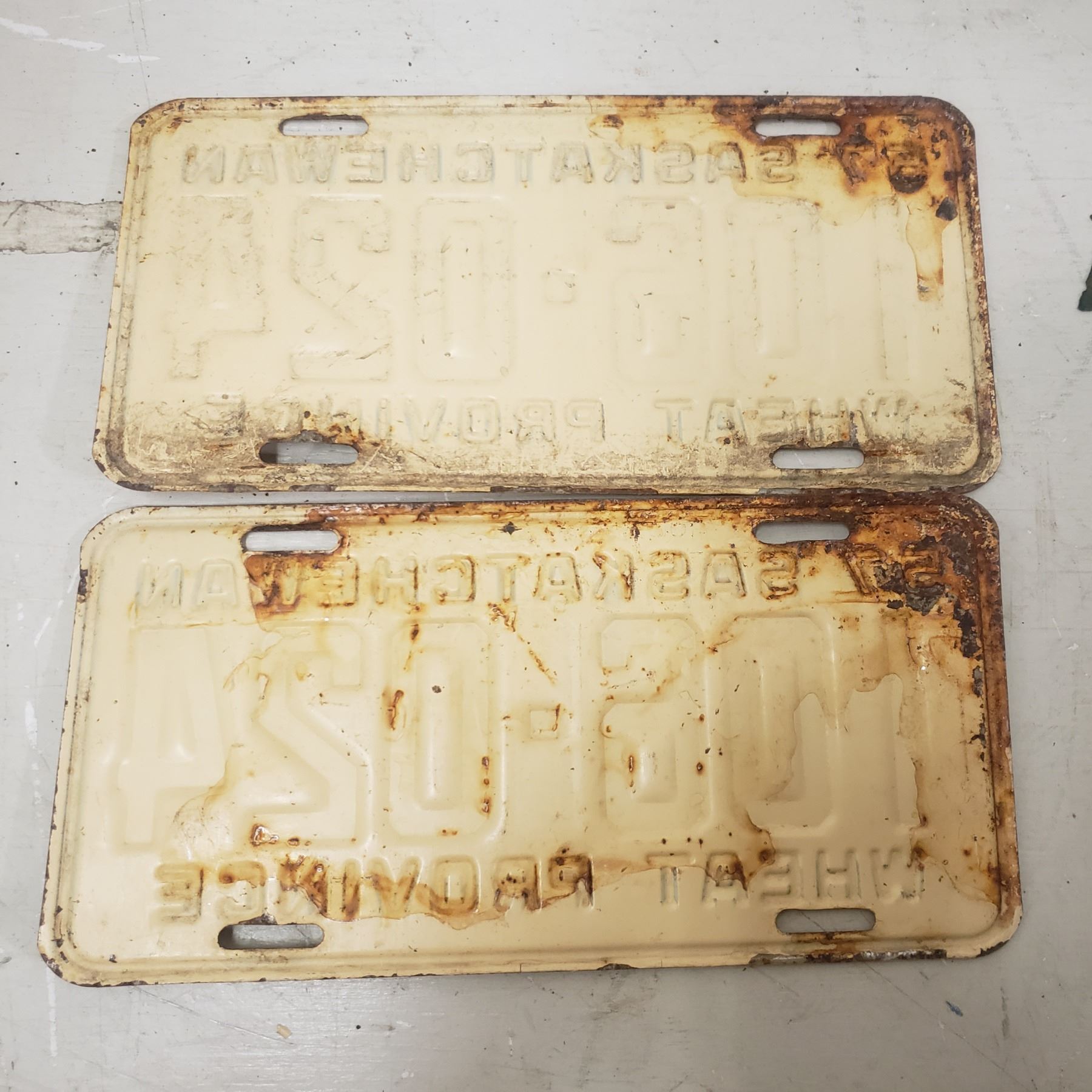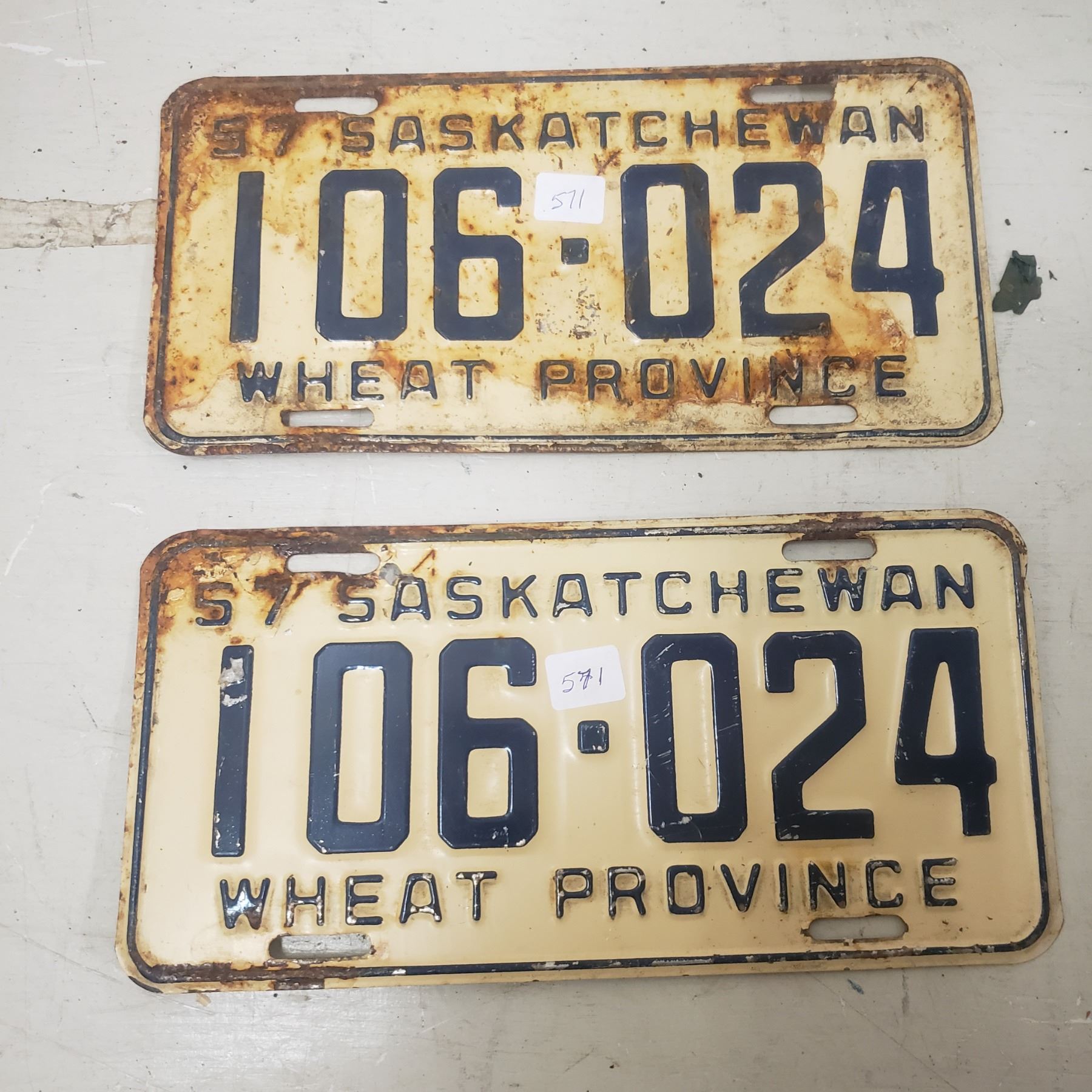 1957 pair of Saskatchewan Liscence Plate vintage original Sask plate