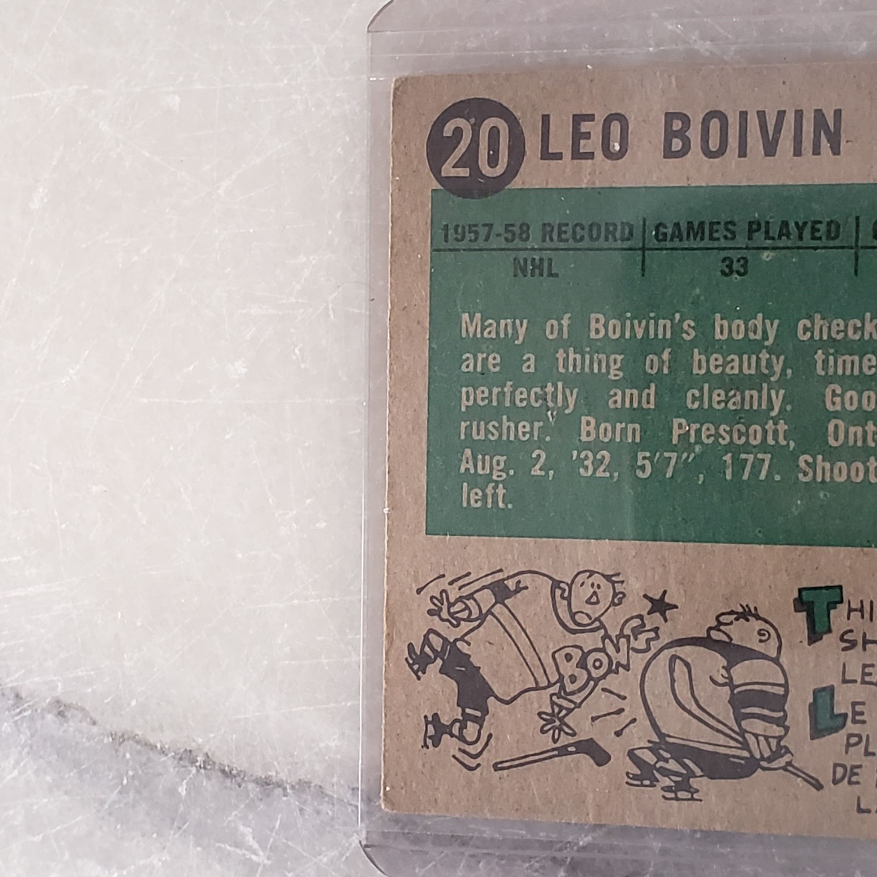 1958-59 Topps Leo Boivin Hall of Fame Boston Bruins hockey cards #20 Vintage