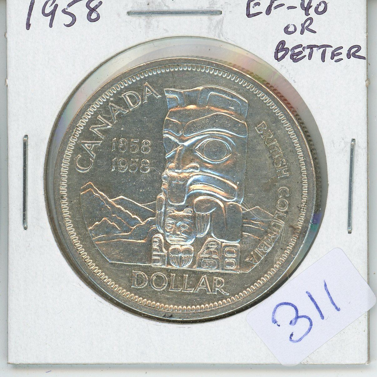 1958 British Columbia Centennial Silver Dollar. EF-40 or better. Nice.