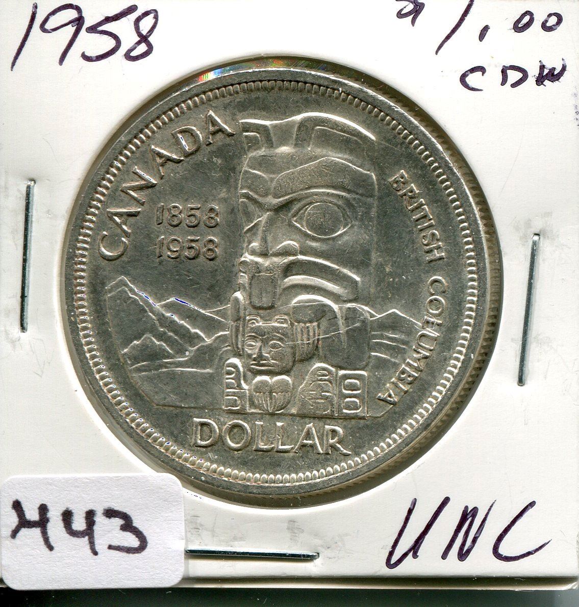 1958 CNDN SILVER DOLLAR *BRITISH COLUMBIA*